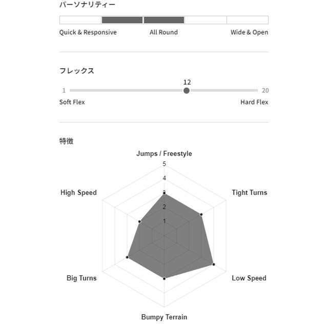 サーフィーなライディングフィールを継承したまま、テーパーを少なくサイドカーブを大きくして中高速でもしっかりと攻め込める実力派だ。
